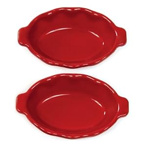 The Silicone Solutions Set of Two Individual Ruffled Edge Oval Bakers, Burgundy Description
